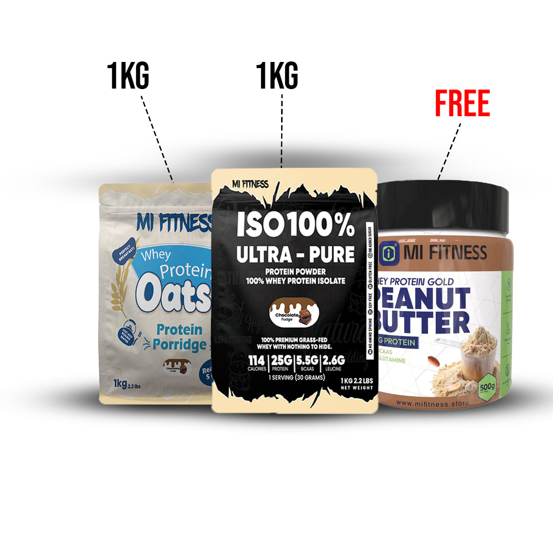 Fuel your day with clean energy, high-quality protein, and delicious nutrition. This combo includes 2 full-size 1KG MI Fitness bestsellers, plus a FREE 500g High-Protein Peanut Butter (24g Protein). Perfect for breakfast, muscle recovery, and all-day performance. 💪⚡